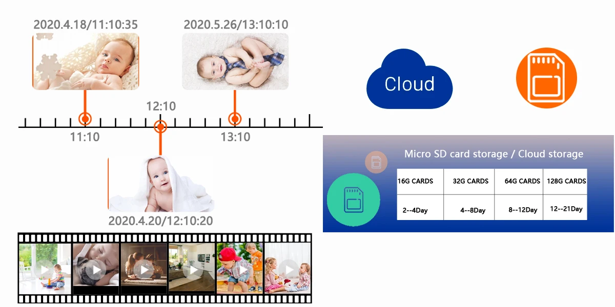 Two enhanced WIFI antennas (only 2.4G) are used to make your signal worry-free. At the same time, you can also choose RJ45 wired installation. SD card and paid cloud storage are also available. You can choose one of them to record. Your security surveillance video.