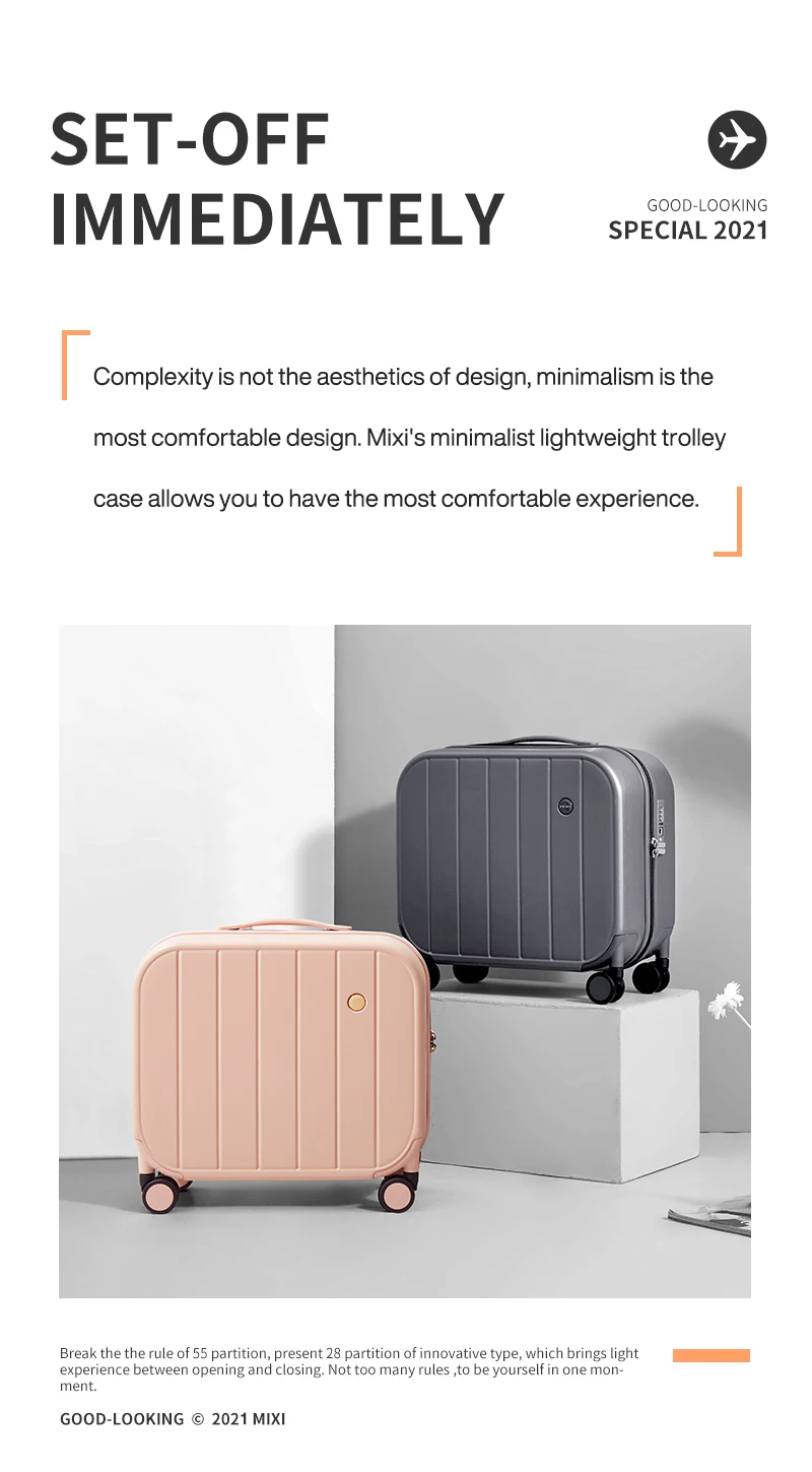 Бренд Mixi, основанный в 2011 году в Гуанчжоу, является независимым дизайнерским брендом, ориентированным на модные путешествия. Mixi придерживается концепции модного дизайна, вводит цвет и фантазию в мир путешествий и сочетает в себе эстетический оригинальный дизайн с ведущими технологиями, чтобы сделать путешествия более модными.