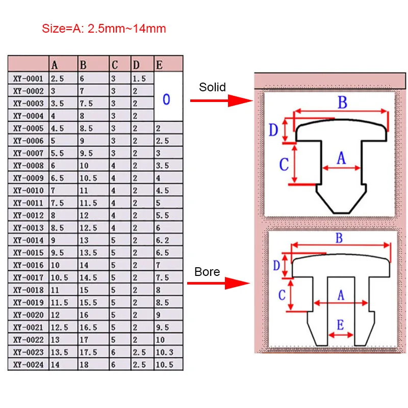 Название продукта: защелкивающиеся заглушки Материал: силиконовая резина Цвет: черный/белый/прозрачный Описание размера: размер соответствует размеру А на рисунке Термостойкость: от-40 ℃ до + 250 ℃