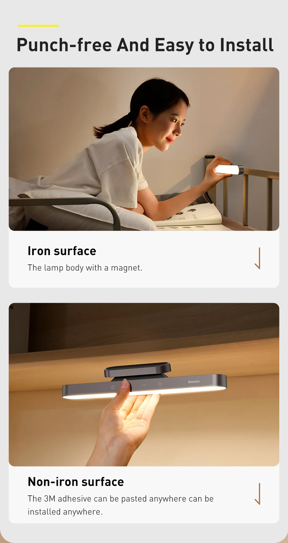 Магнитное основание лампы может быть прикреплено в любом месте, с сильной силой притяжения, чтобы предотвратить падение, и не занимает настольное пространство.