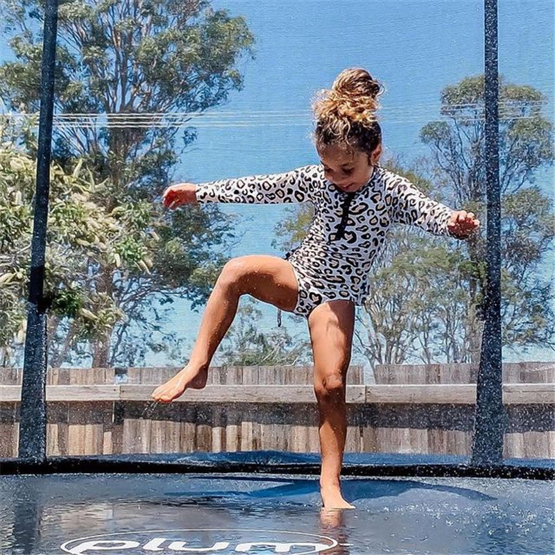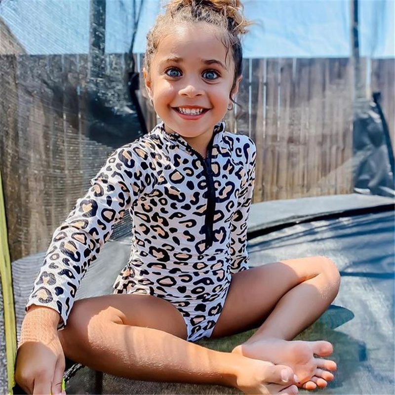 Детский купальник-бикини для маленьких девочек; Цельный Модный Купальник с длинными рукавами и леопардовым принтом на молнии; Купальный костюм; Bebe