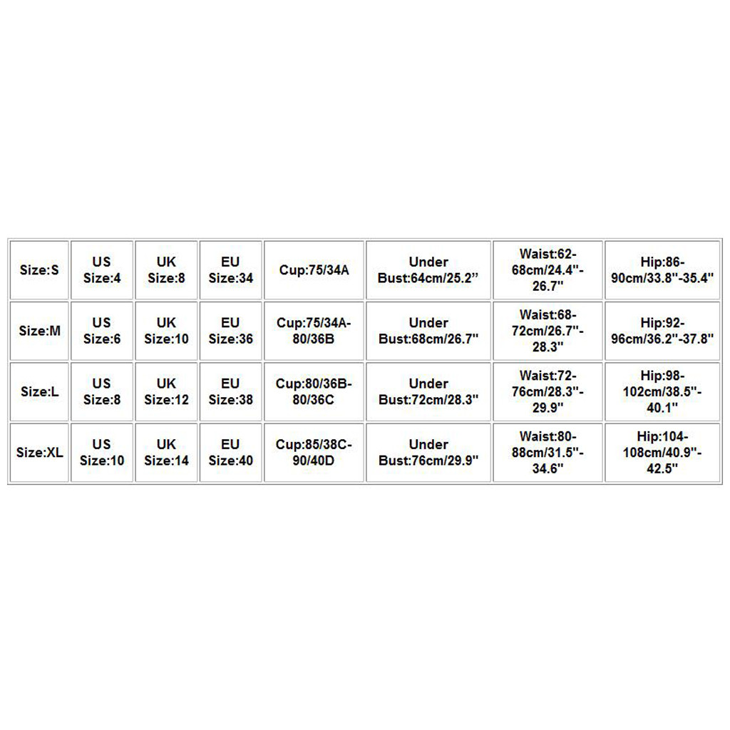 Размер Американский размер Размер Великобритании Европейский размер Чашка Под грудью Талия Бедра S 4. 8 34 75/34A 64 см/25,2 дюйма 62-68 см/24,4 "-26,7" 86-90 см/33,8 "-35,4" М 6 10 36 75/34A-80/36B 68 см/26,7" 68-72 см/26,7 "-28,3" 92-96 см/36,2 "-37,8" L 8 12 38 80/36B-80/36C 72 см/28,3 дюйма 72-76 см/28,3 "-29,9" 98-102 см/38,5 "-40,1" XL 10 14 40 85/38C-90/40D 76 см/29,9" 80-88 см/31,5 "-34,6" 104-108 см/40,9 "-42,5"