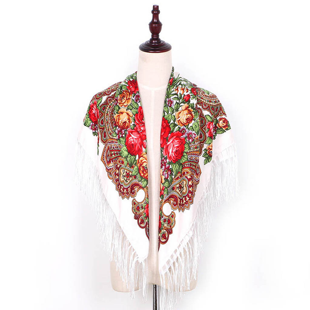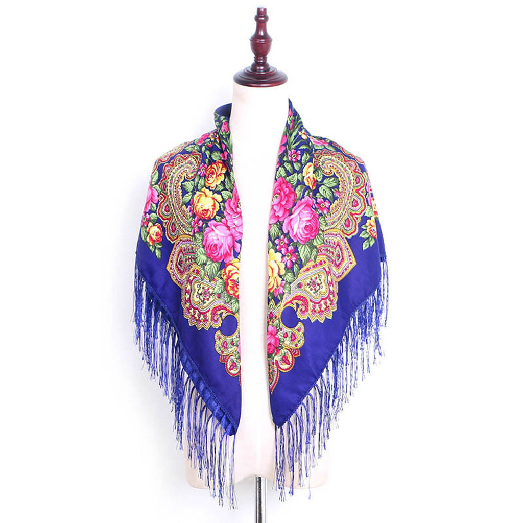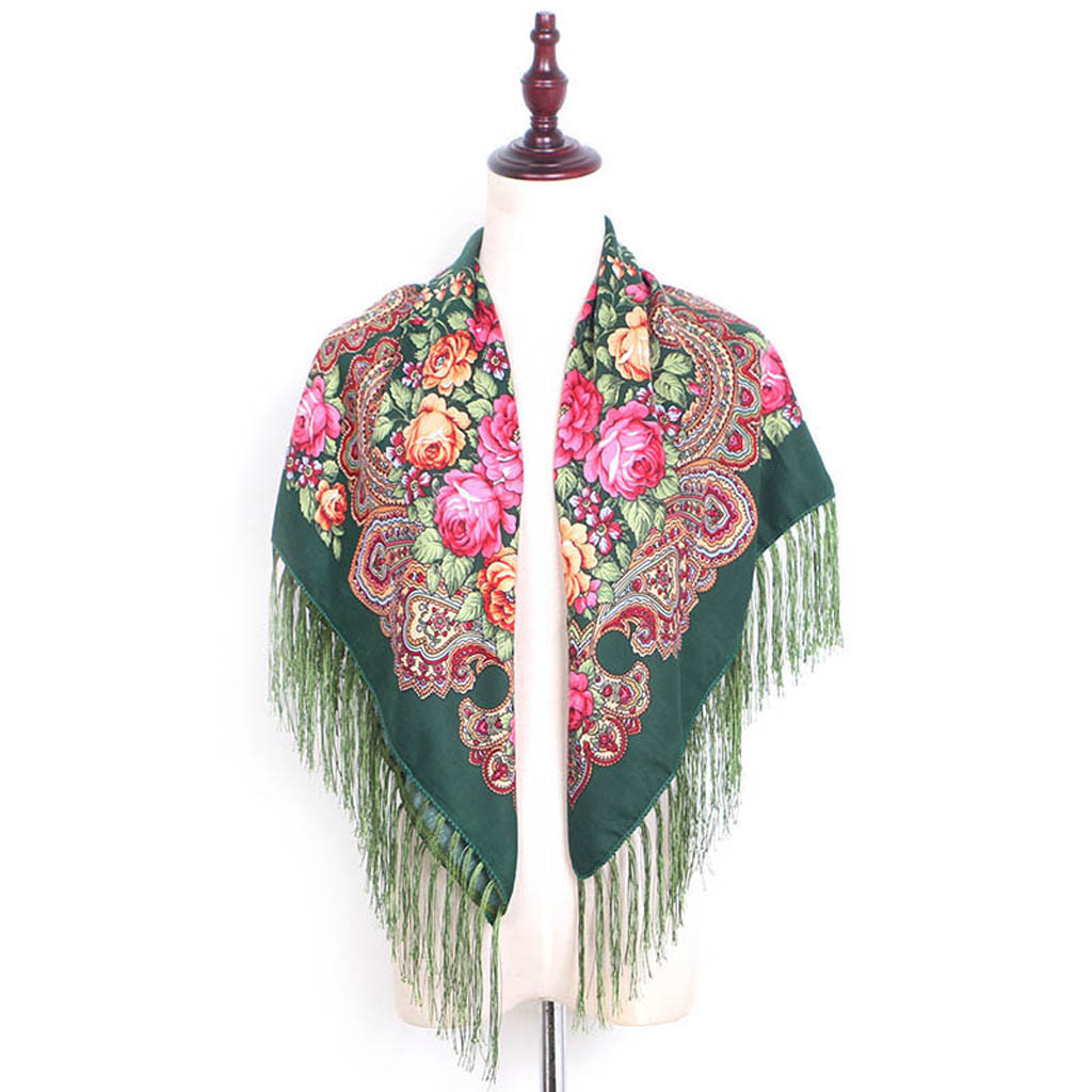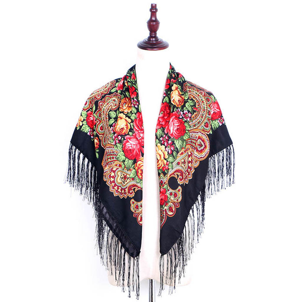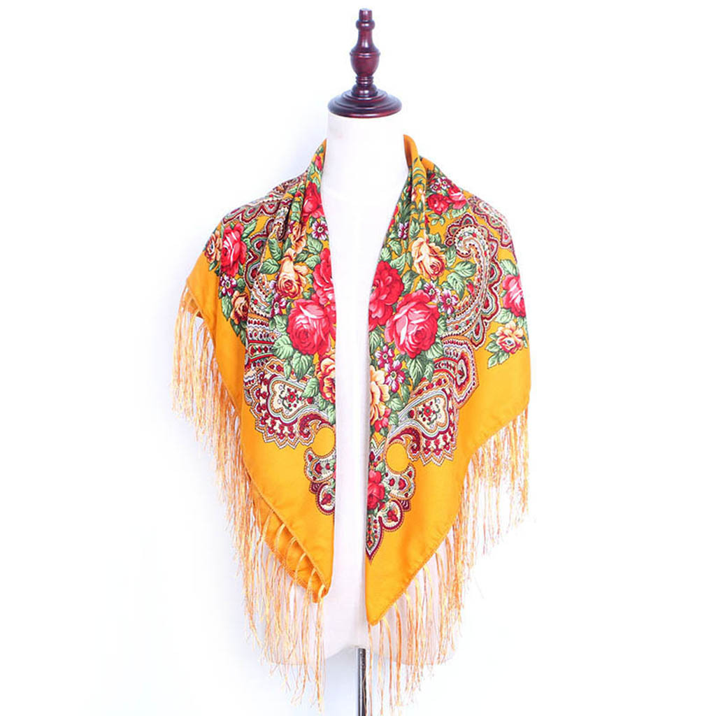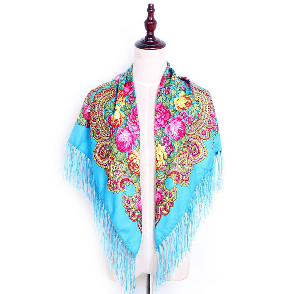 Женский квадратный шарф с принтом и кисточками в народном стиле, шаль для путешествий
