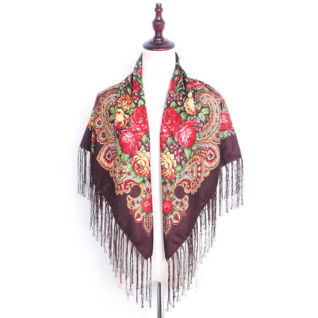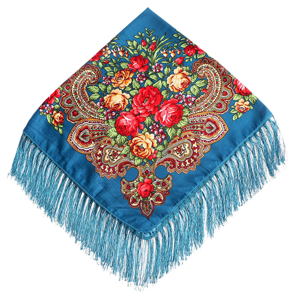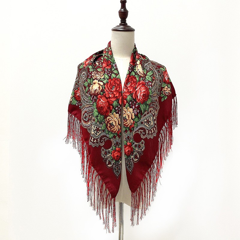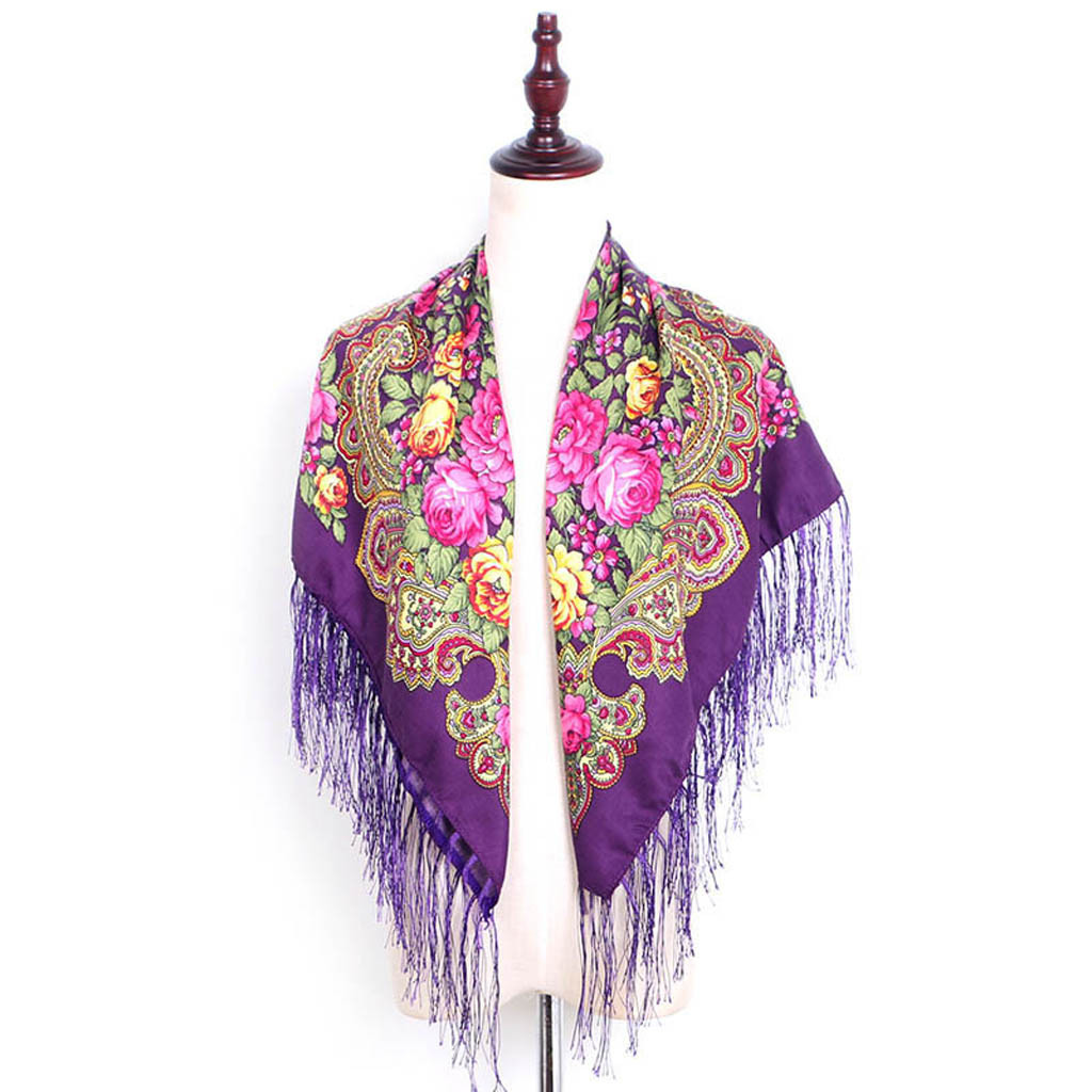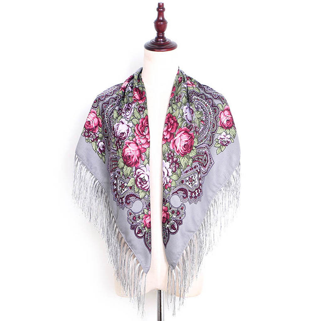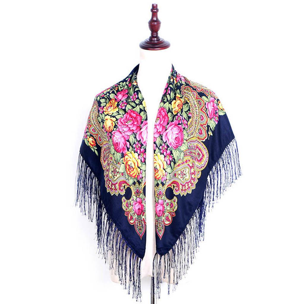 Женский квадратный шарф с принтом и кисточками в народном стиле, шаль для путешествий