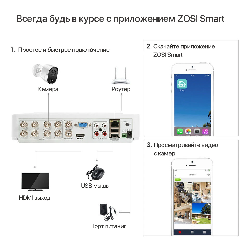 ZOSI H.265 + 5Мп комплект видеонаблюдения на 8-каналов.