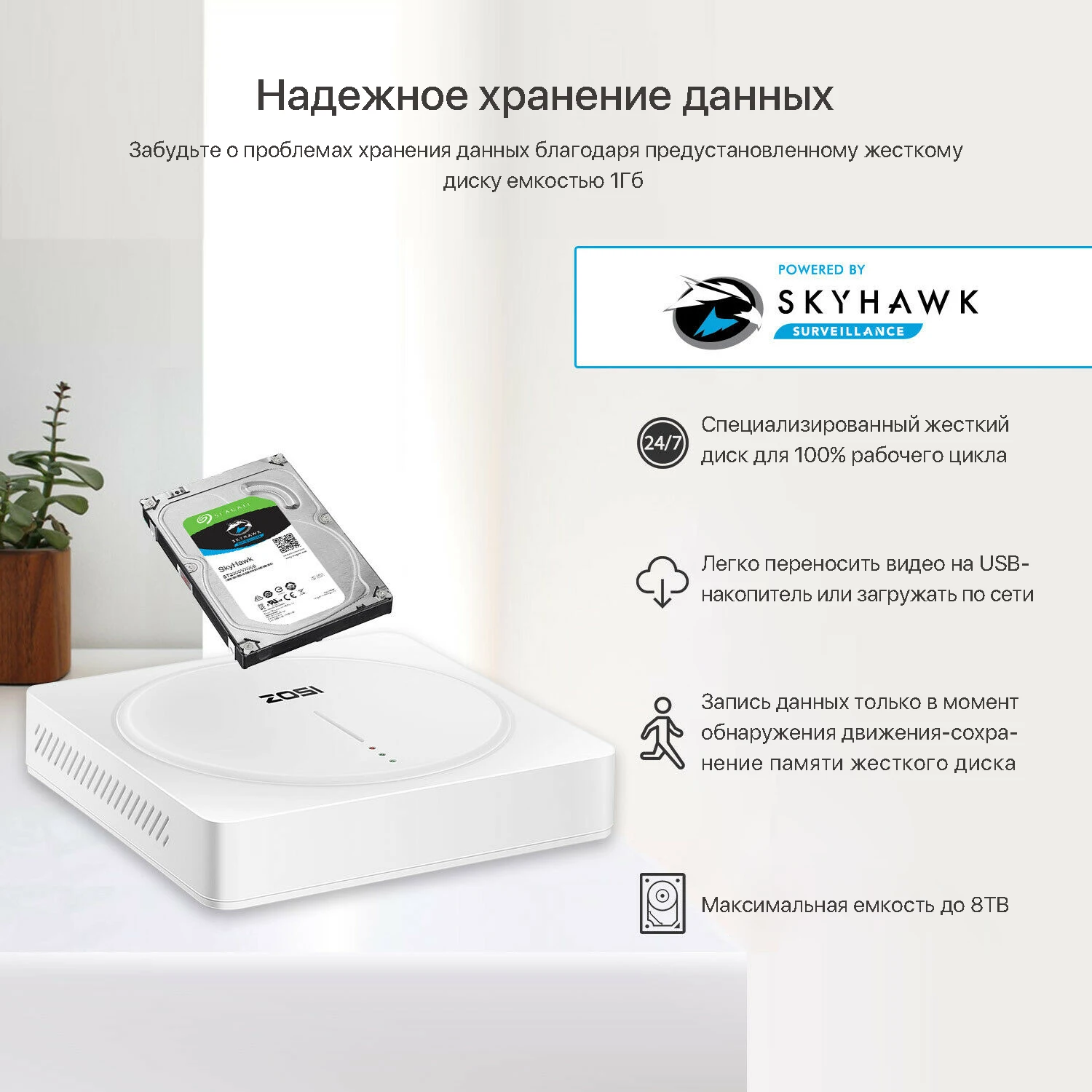 HDD: 1 * sata порт (поддержка до 8 ТБ)
