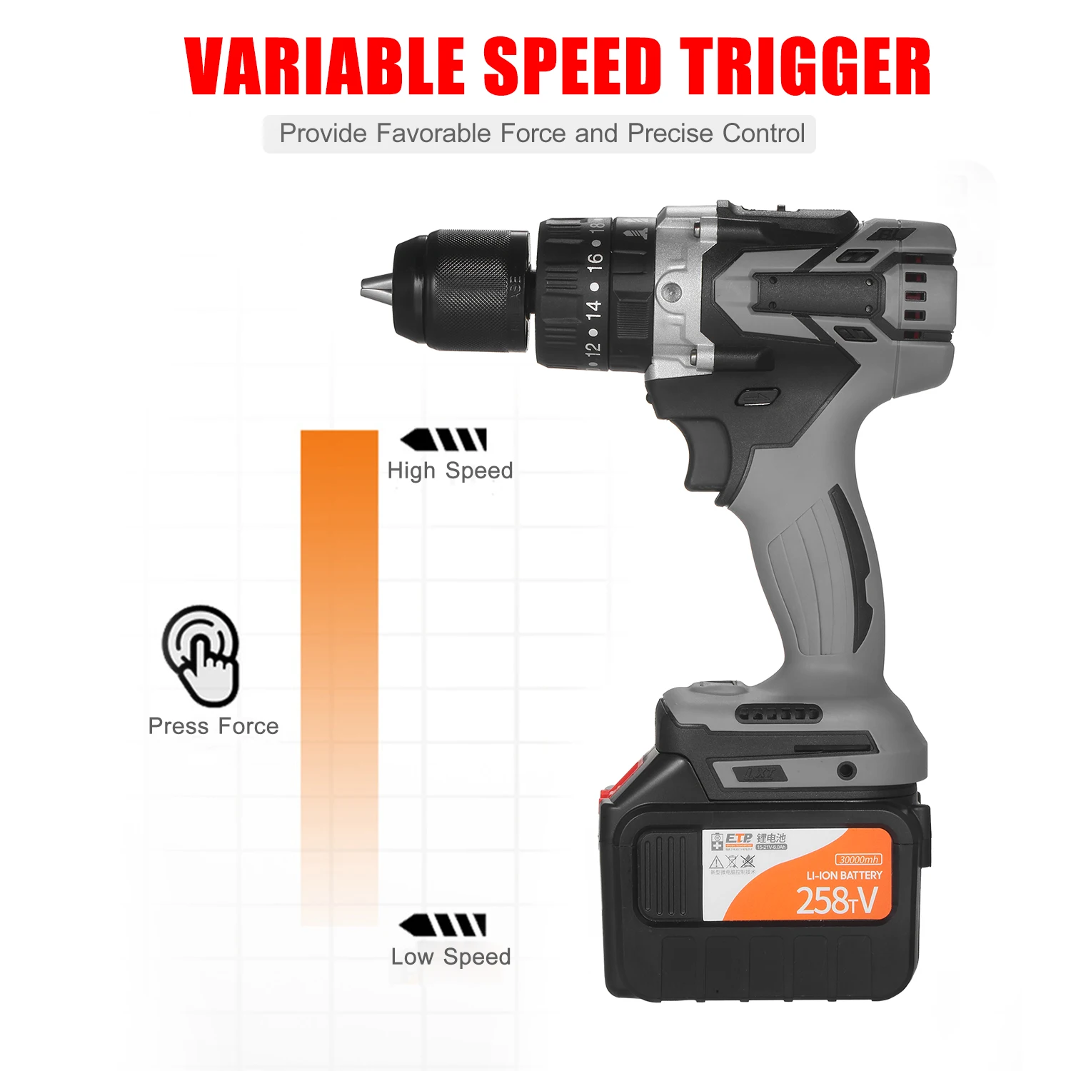 Аккумуляторная дрель промышленного класса с бесщеточным двигателем может поставлять до 200 нм (2655 инф) ударную мощность, что в 10 раз больше, чем большинство дрелей на рынке. 2-Скорость дрель с 23 сцепления положение для плоское сверло/Kai и не выкручивать/воздействия, переменной Скорость контролируется разных пресс силы, костюм для цветной стальной установки, металла, сверление, открытие 100 мм большого отверстия для дерева и т. Д.