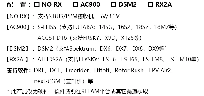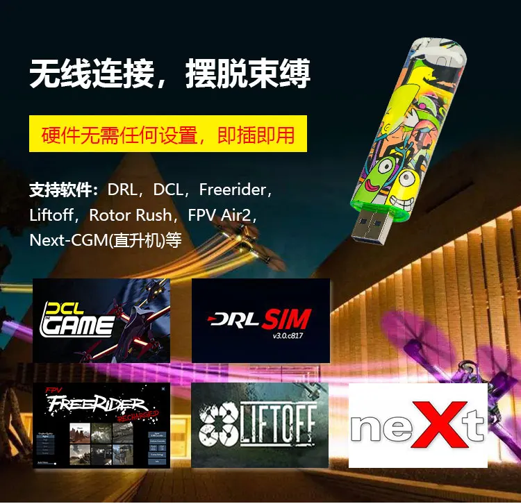 Поддержка программного обеспечения: DRL, DCL, Freerider, Liftoff, Rotor Rush, FPV Air2, next-CGM (вертолет) и т. Д.