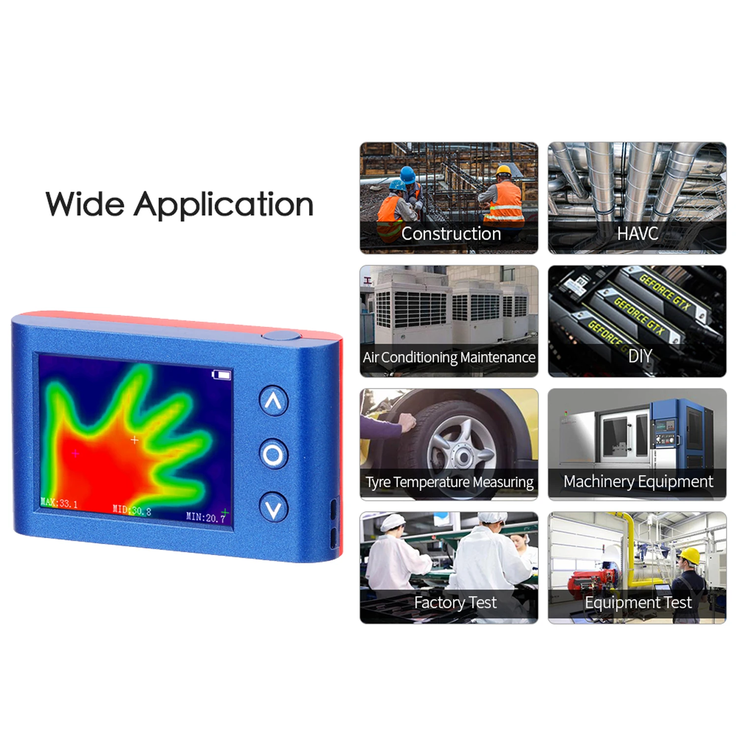 Это портативный и многофункциональный тепловизор, компактный и легкий, с 2,4 inch ЖК-дисплей экран дисплея, вы можете увидеть данные более четко, легко носить с собой. Он может использоваться в различных ситуациях и является незаменимым инструментом для домашнего и промышленного использования. Приходите и попробуйте, это не подведет вас.