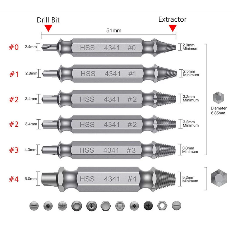 * Набор экстракторов 6 шт./компл., который отвечает требованиям различных болтов и болтов