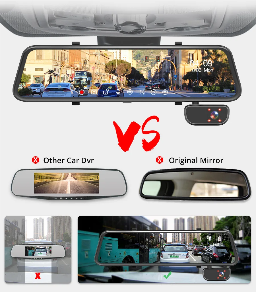 ★【 Антибликовое и не подвержено чрезмерному воздействию 】отличается от большинства зеркальных камер, зеркало Acceo dash cam принимает уникальный полностью ламинированный антибликовый экран, приносит вам лучшее изображение даже при сильном солнечном свете. Благодаря оригинальному сенсору SONY в технологии HDR на всех линзах изображение или видео не будут перегружаться другими фарами, вы можете четко видеть каждую пластину в ночном видении с безопасным вождением.