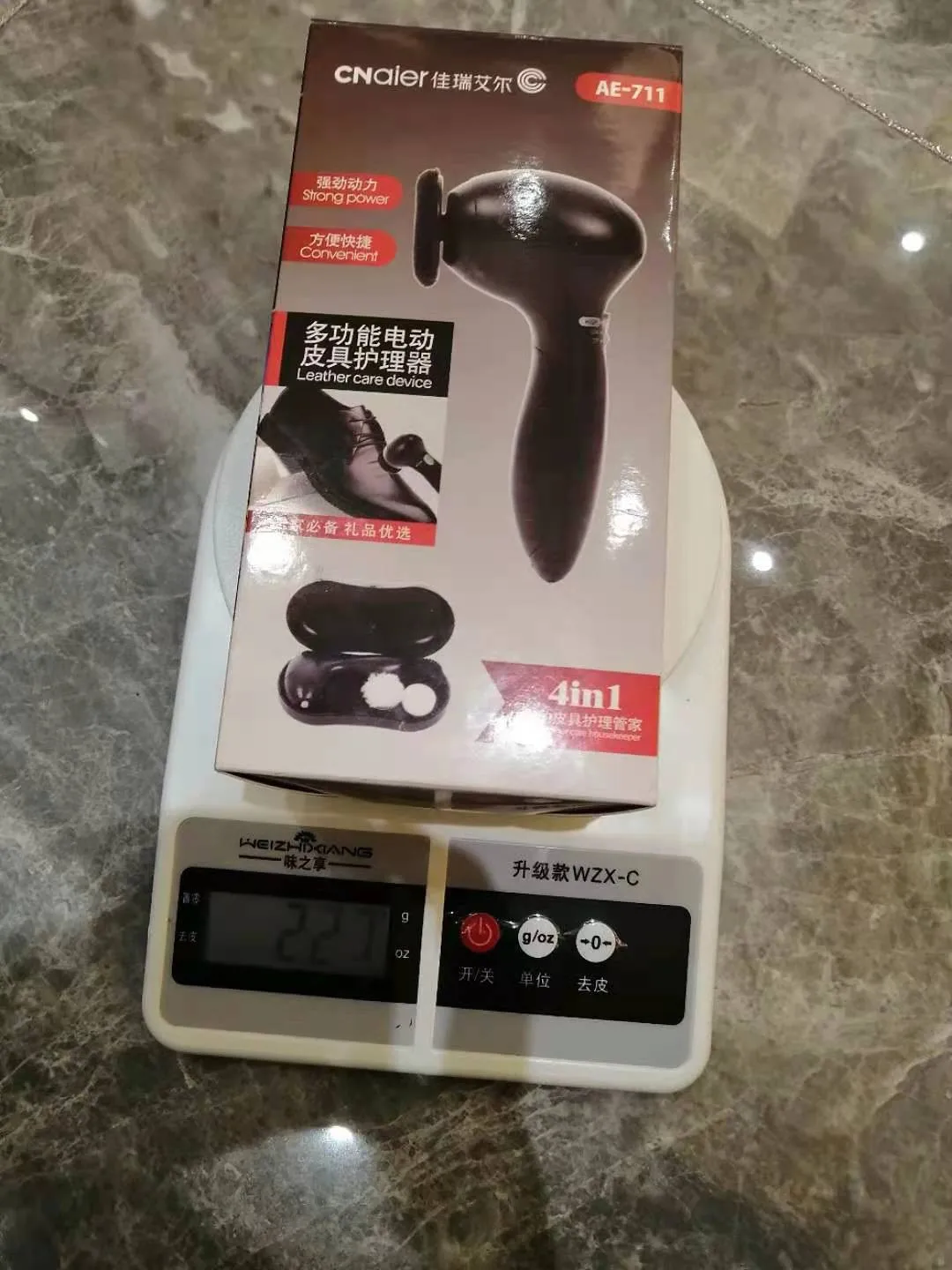 Посылка содержит: 1 xЭлектрическая щетка для обуви,1 xD ustКисть, шлифовальный камень, смазывающая щетка, полировальная щетка, кисть для осветления