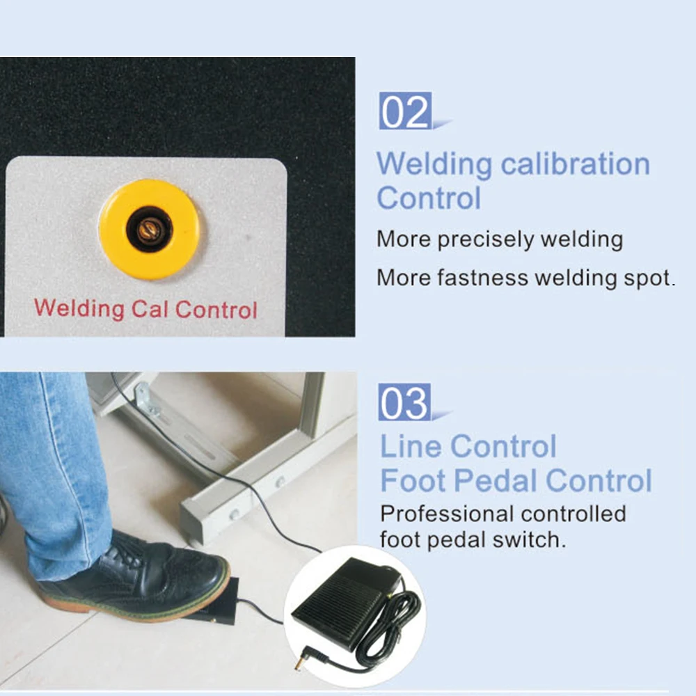 Параметры сварки точечного сварочного аппарата отображаются на цифровом дисплее светодиодный индикатор, и контроль более точен. Двухконтактное независимое регулируемое давление, сварка более надежная.