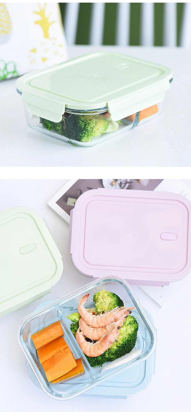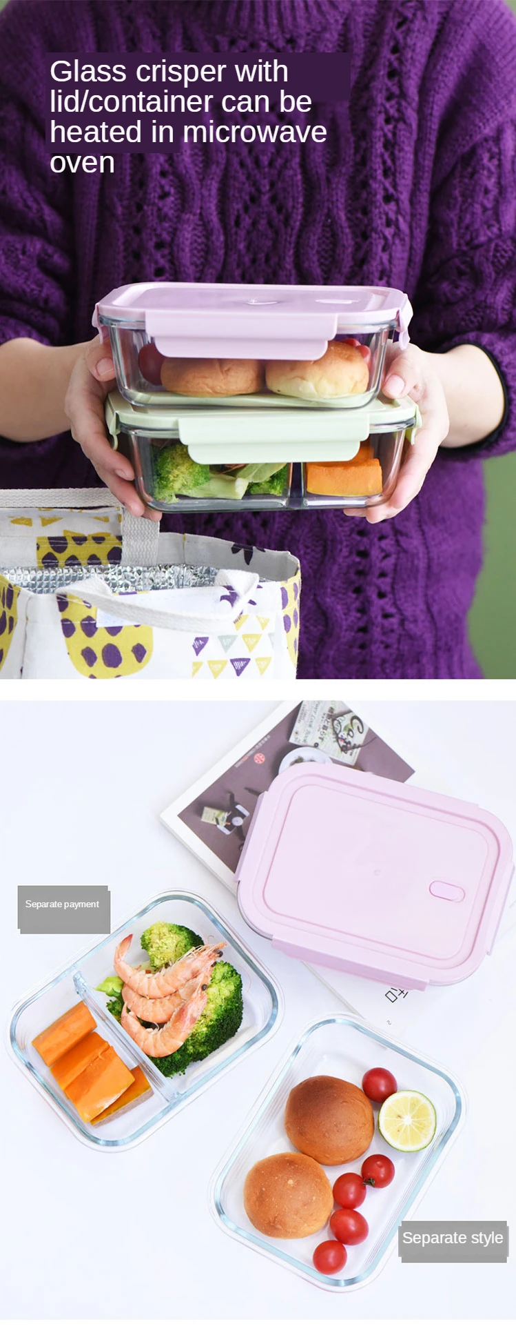 Характеристики: Ланч-бокс изготовлен из высококачественного боросиликатного стекла, что очень безопасно. Может нагреваться в микроволновой печи. Может нагреваться в микроволновой печи. Когда крышка закрыта, будьте осторожны, чтобы не закрывать крышку. Когда крышка плотно закрыта, Ланч-бокс запечатан. Подходит, в дополнение к производству ланч-боксов, мы можем использовать больше в качестве контейнеров для хранения холодильников, которые являются чистыми И гигиеничными. Есть два стиля разделения и без разделения коробки для завтрака для вас на выбор, и есть три цвета, которые можно использовать вместе.