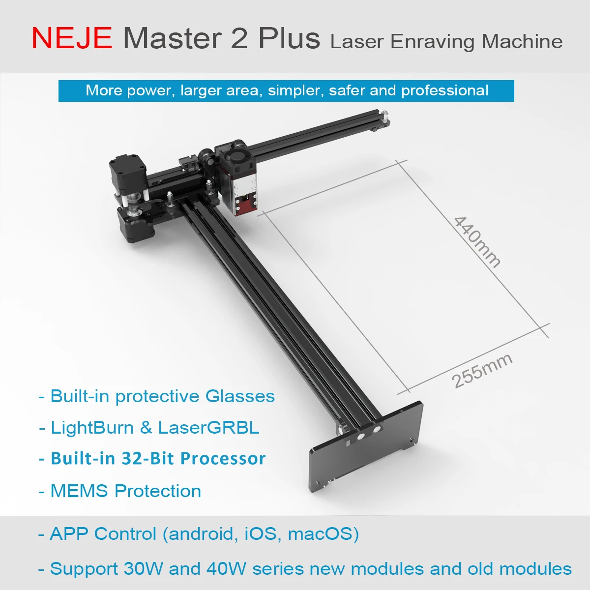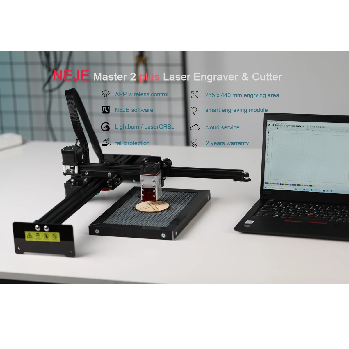 NEJE Master 2 Plus лазерный гравер может похвастаться большим рабочим размером 255 × 440 мм, модифицированным воздушным ассистированием, защитой от рулона MEMS, тихим бегом и автоматической регулировкой температуры. Поставляется с 30 Вт Фокусируемый лазерный модуль, который может обеспечить 7,5 W 450nm синий светильник лазер для легкого лазерной гравировки и резки различных мягких материалов. Несколько профессиональных программного обеспечения поддерживаются как LightBurn. Обеспечивает автономное управление приложением, которое совместимо с Android/Windows/iOS. Это универсальный лазерный гравировальный станок, который никогда вас не разочарует.