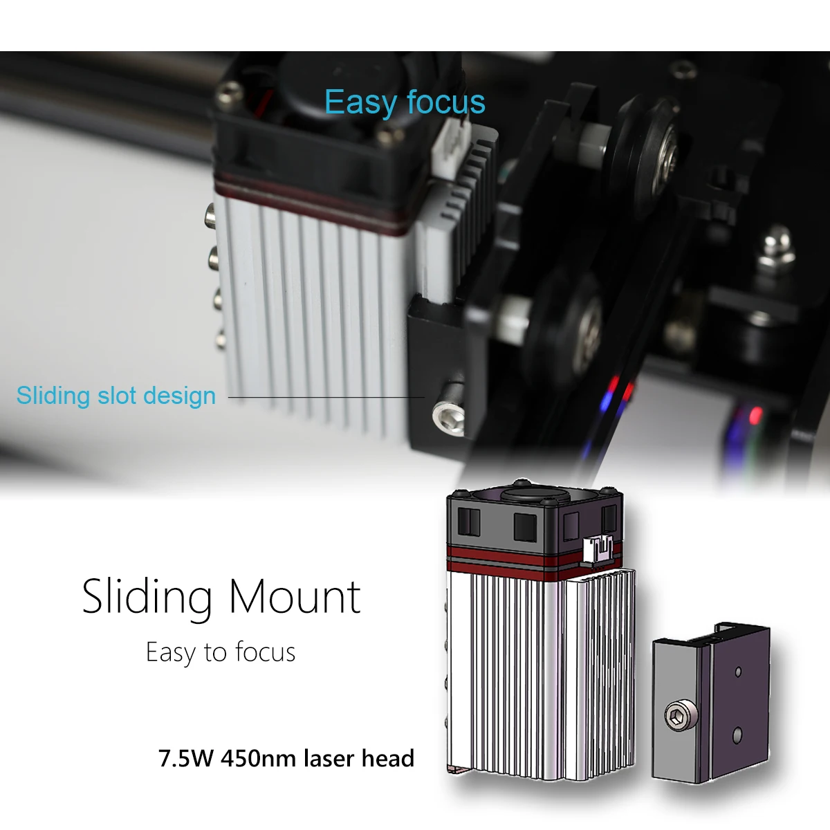 Больше worksize 25,5 × 44 см, 7,5 W 450nm синий светильник лазер для лазерной гравировки и резки.