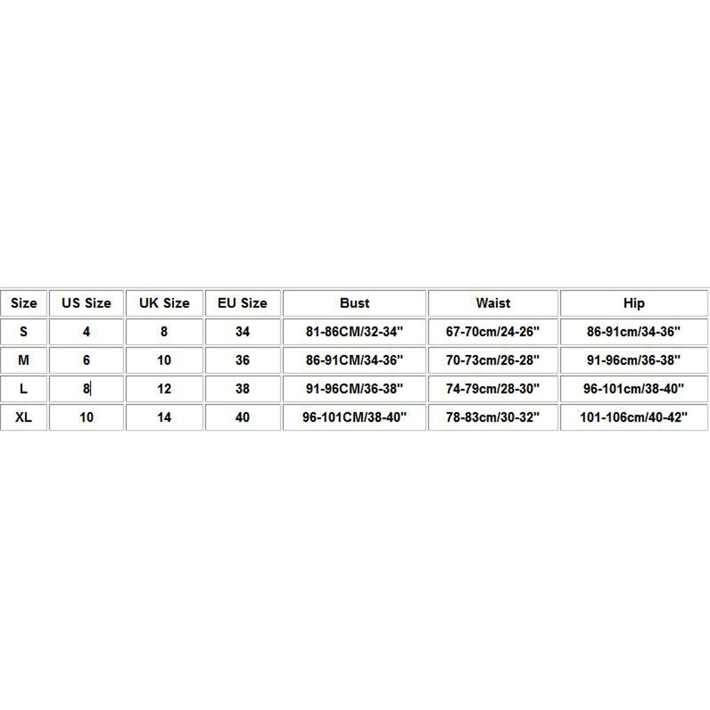 Размеры Размер США Размер Великобритании Размер ЕС Бюст Талия Бедра S 4 8 34 81-86 см/32-34" 67-70 см/24-26" 86-91 см/34-36" М 6 10 36 86-91 см/34-36" 70-73 см/26-28" 91-96 см/36-38" L 8 12 38 91-96 см/36-38" 74-79 см/28-30" 96-101 см/38-40" XL 10 14 40 96-101 см/38-40" 78-83 см/30-32" 101-106 см/40-42"