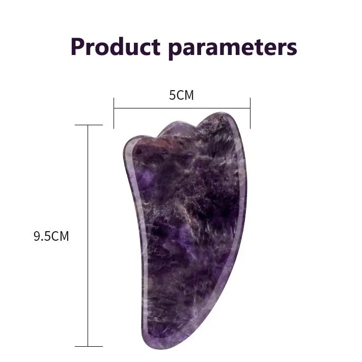 2. Натуральный фиолетовый кристаллический камень Gua Sha-это отличный массажный инструмент для Gua Sha, Gua Sha может улучшить кровообращение, способствовать обмену веществ. Он отлично подходит для использования на теле и очень полезен для снятия давления, всегда с расслабляющим и изящным настроением