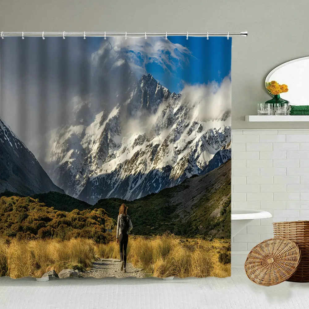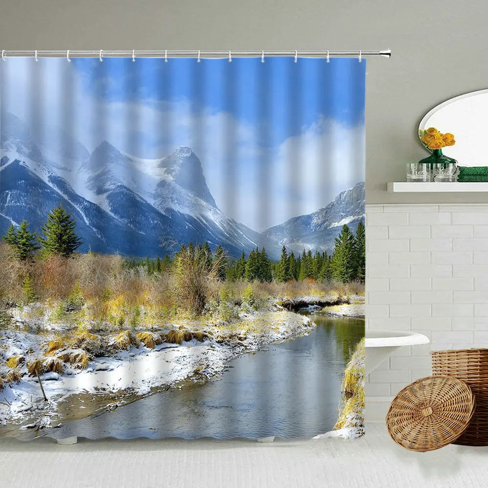 Занавески для душа с природными пейзажами, снежные горные леса, зимние альпинистские водонепроницаемые занавески для ванной комнаты, украшение для дома с крючком