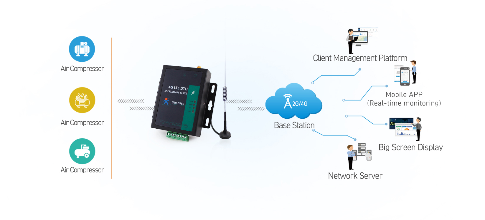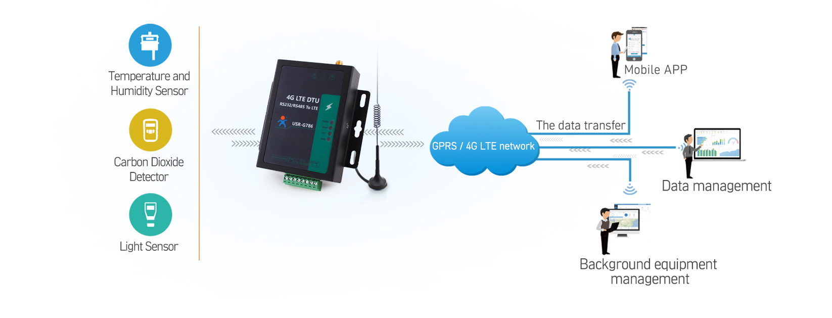 G786-G пользователя может быстро загрузить данные, собранные различными датчиками в сельскохозяйственном теплице на удаленный сервер через сеть LTE или GPRS. Это удобно для центра управления для мониторинга динамики окружающей среды теплицы в режиме реального времени и делает своевременные ответы.