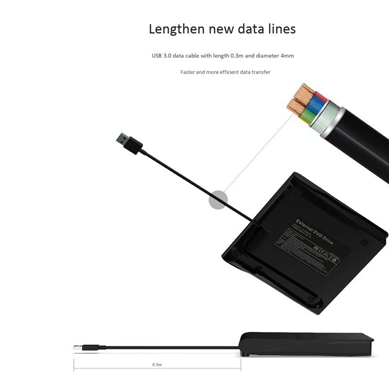 Этот продукт использует новейшие технологии USB 3,0 и поддерживает новейший интерфейс TYPE-C и старый USB2.0. Он готов к использованию, нет необходимости устанавливать драйверы. Стабильное считывание дисков и быстрое горение.