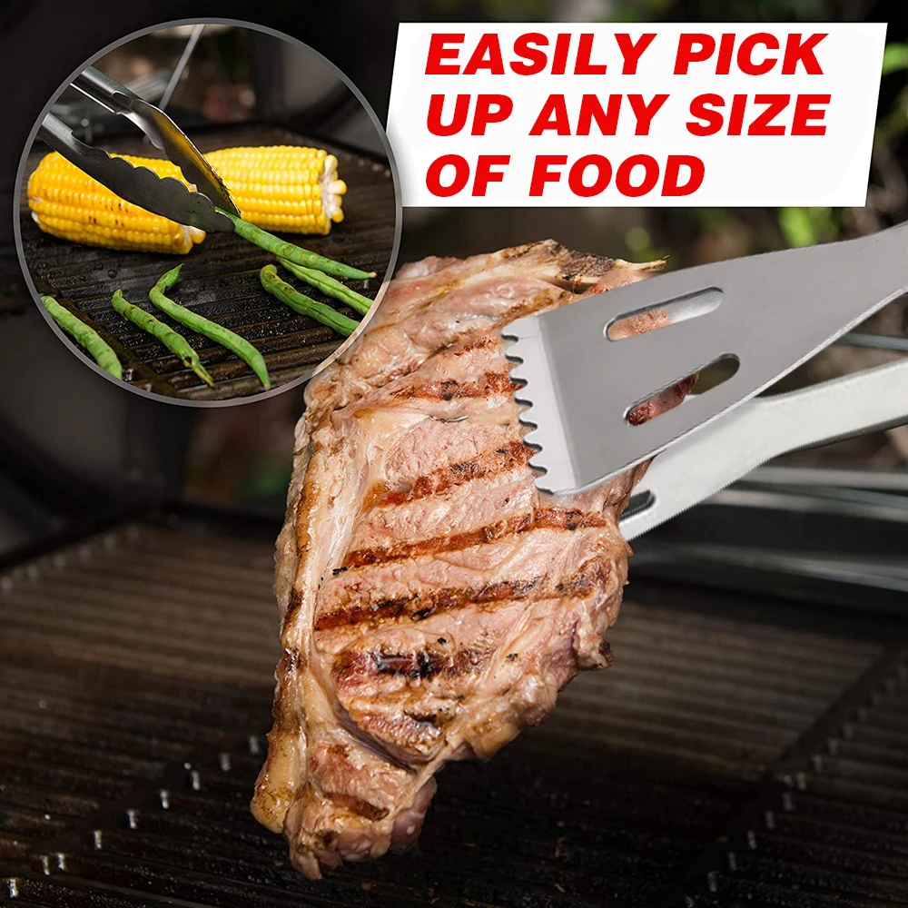 Простота в использовании: шпатель разработан с широким острым лезвием на верхней части, а Тонг с опилкой для легкой очистки гриля.