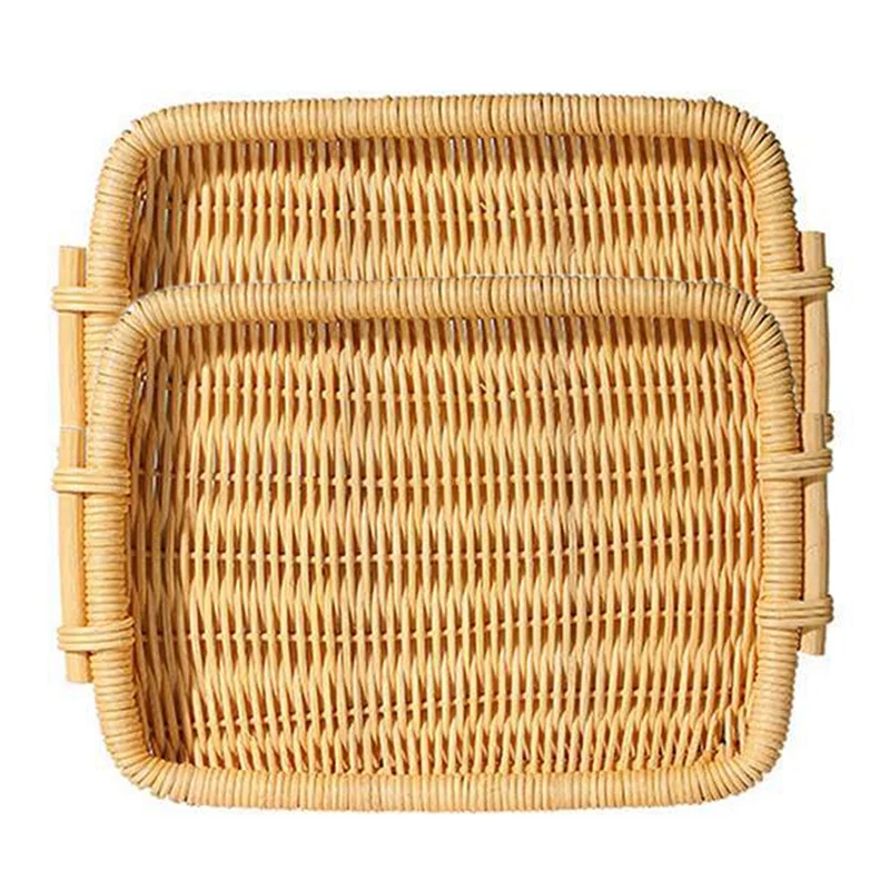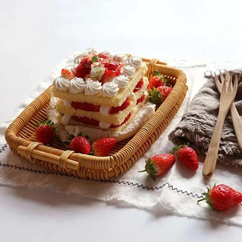 Прямоугольная корзина для хлеба из натурального ротанга для сервировки, лотки из ротанга с боковыми ручками для фруктовой еды