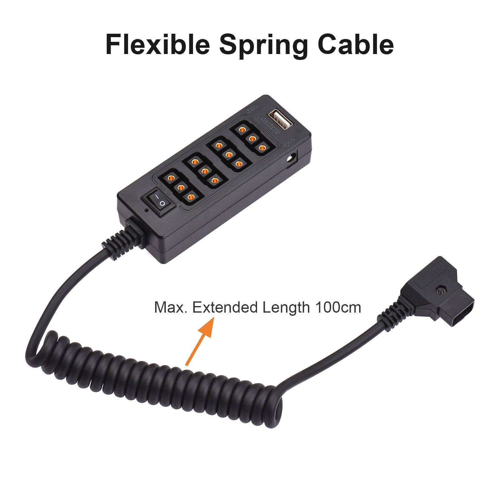 Многофункциональный разъем D-Tap:Разъем D-tap предназначен для расширения подключения к источнику питания, идеально подходит для питания нескольких беспроводных приемников, бортовых мониторов, батарей с v-образным креплением и т. д.