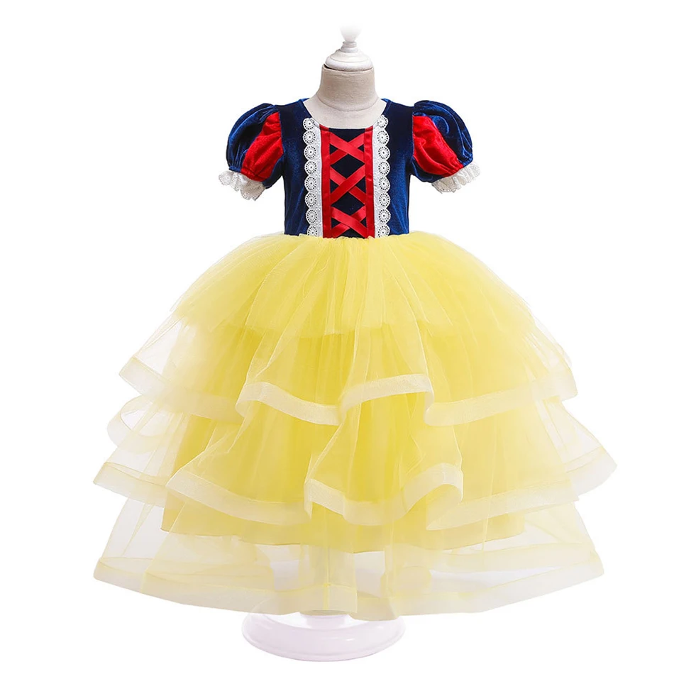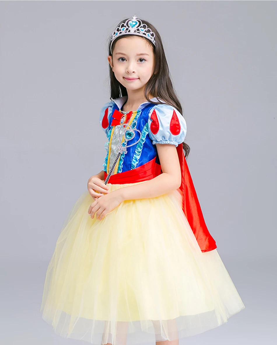 Детские платья Белоснежки для девочек; Платье принцессы с короткими рукавами; Вечерние костюмы для маленьких девочек на день рождения; Нарядная одежда для костюмированной вечеринки