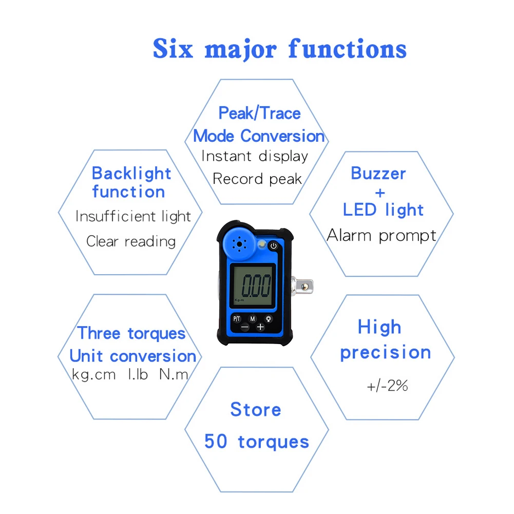 Это полезный инструмент для использования в повседневной жизни, вы можете подключить его с помощью храпового ключа, который не входит в комплект), немедленно станьте ключом с крутящим моментом на цифровом дисплее, это также небольшой размер и легко носить с собой, так что вы можете взять его в любом месте, где вы хотите его использовать, Приходите и попробуйте, это не подведет вас.