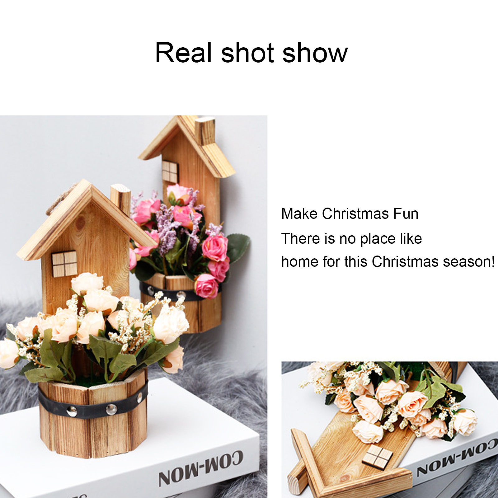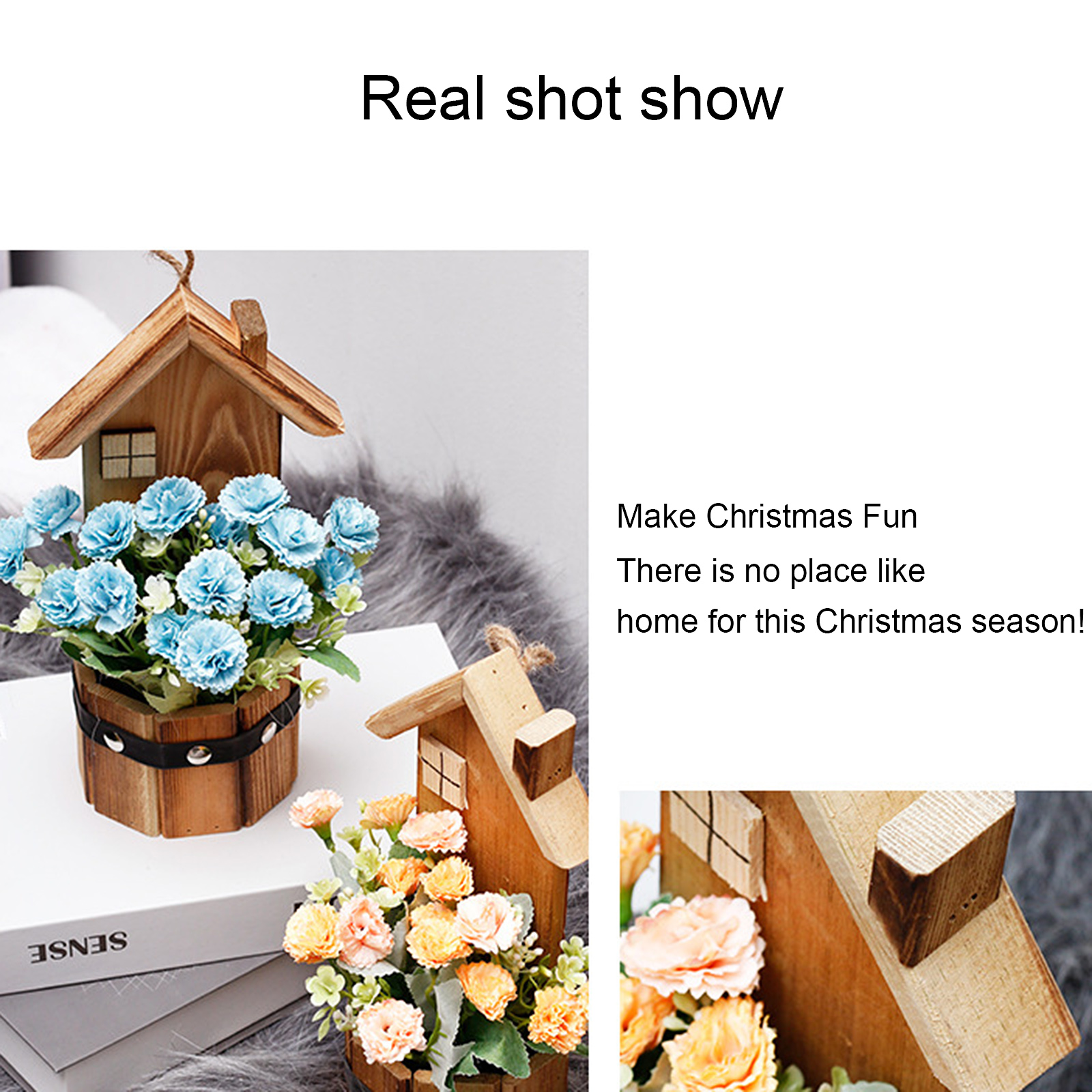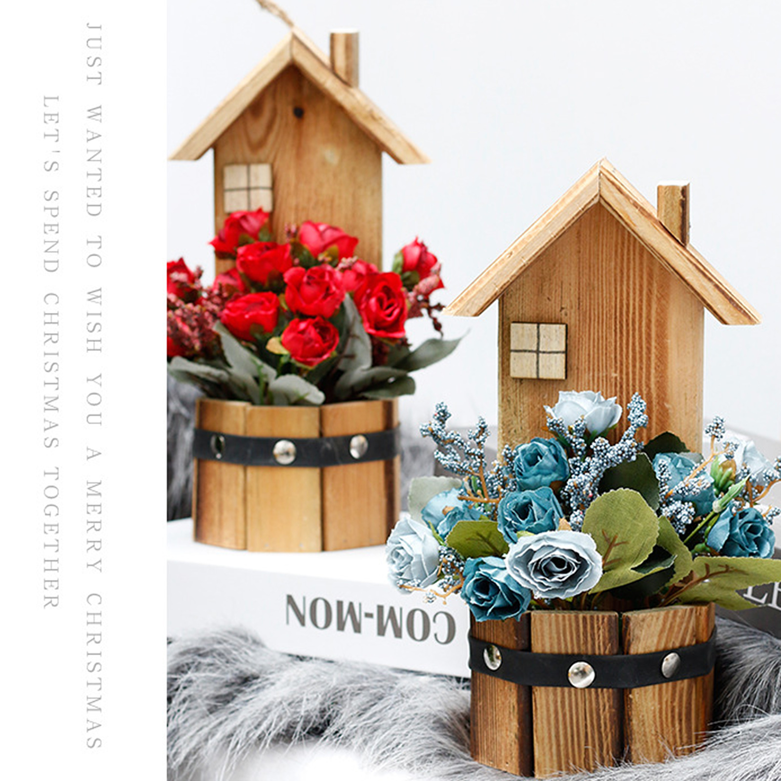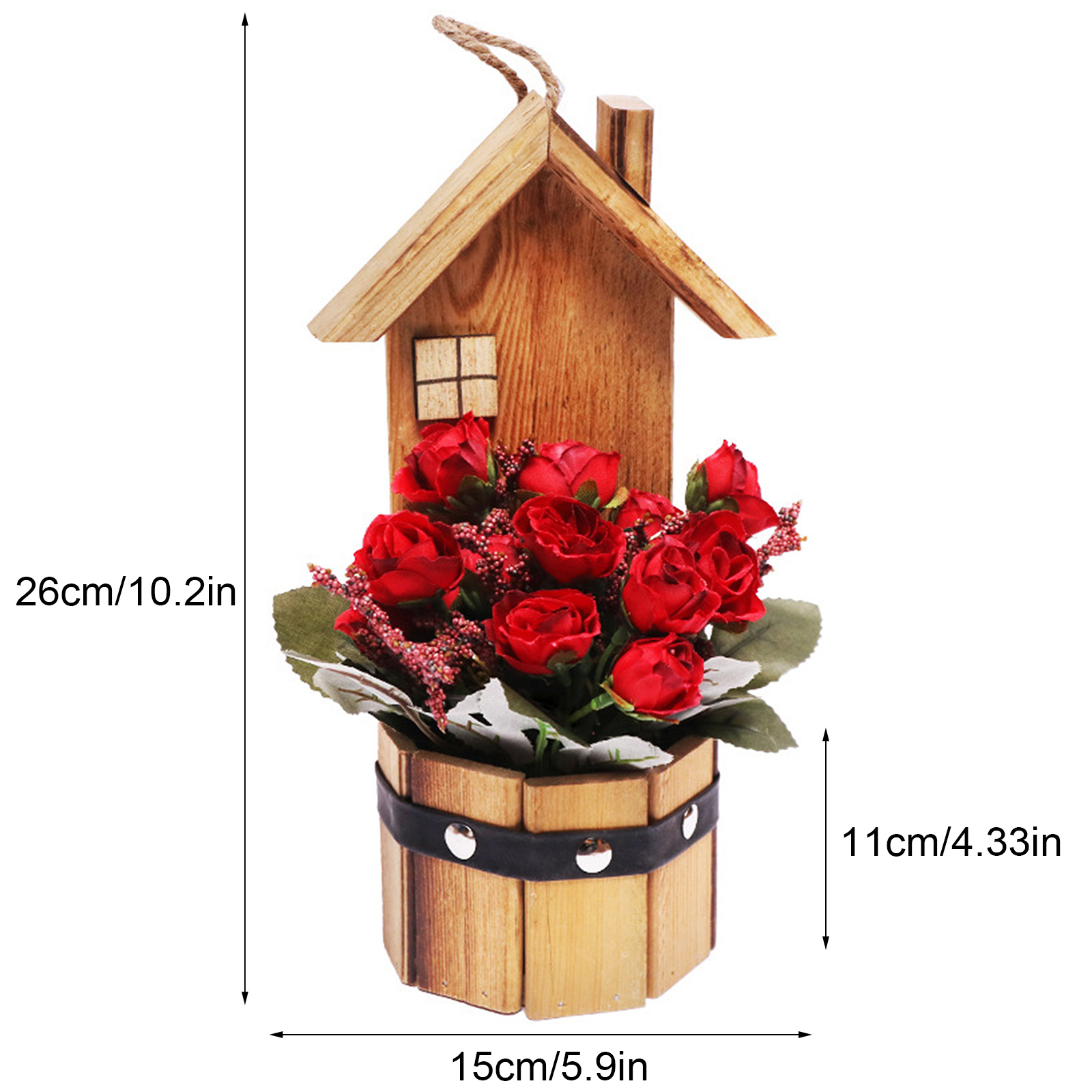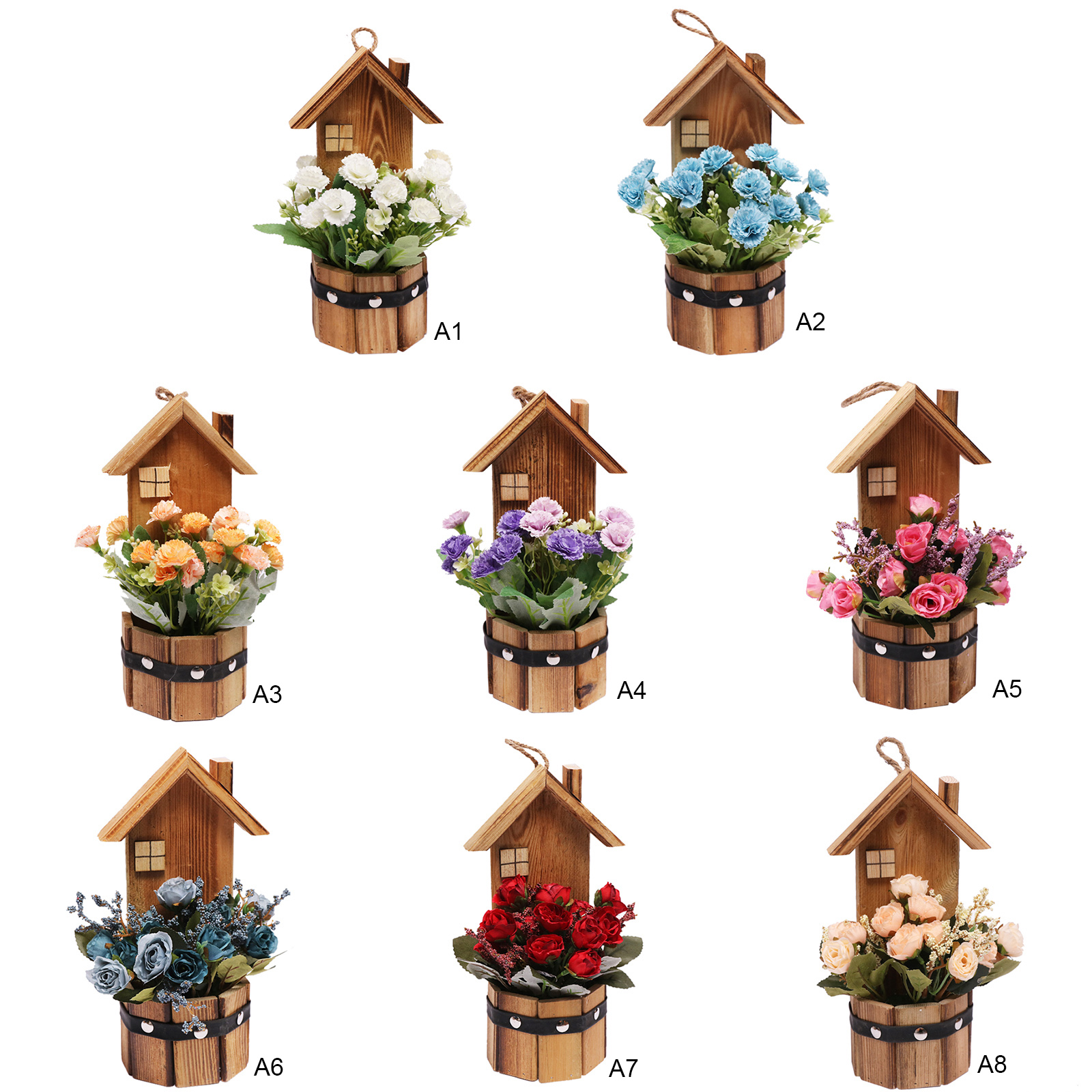 Подвесной деревянный дом в горшке имитация цветка деревянное украшение для дома Горшечное растение Настольный орнамент маленький искусственный бонсай