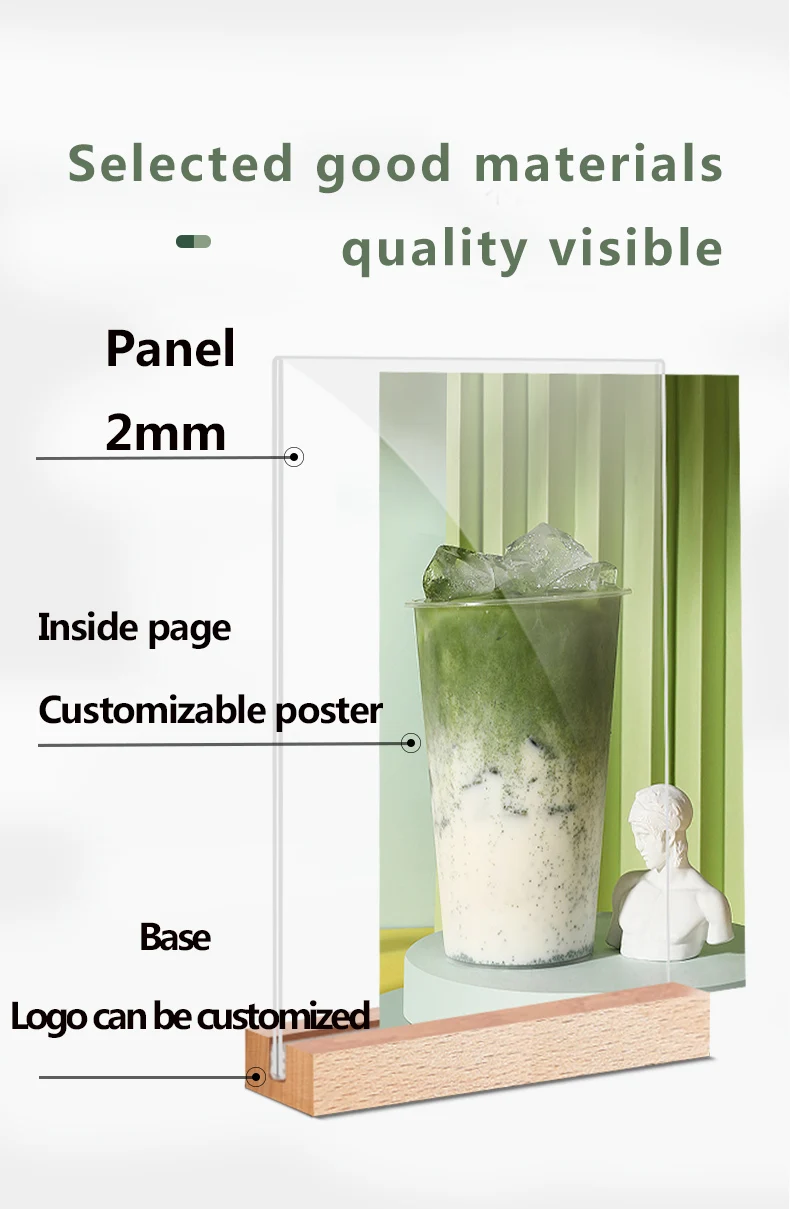 Название продукта: А6 деревянный выставочный стенд, акриловый А5 стол, меню, цена, рекламный щит, молочный чай, табличка, двусторонний прозрачный Стенд, ценник
