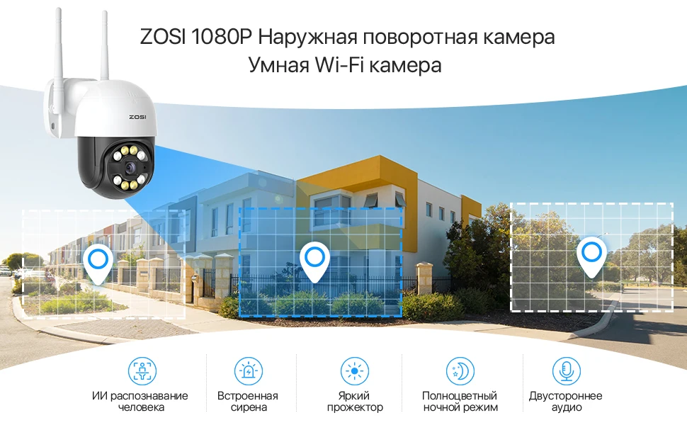 Функция умного распознавания человека безошибочно определяет людей среди других движущихся объектов, тем самым сокращая ложные тревоги. При обнаружении человека, устройство незамедлительно отправит вам тревожное push-уведомление на смартфон. С умной камерой ZOSI вы всегда на чеку.