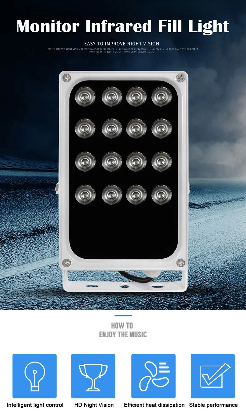 Note: The lens of the camera must match the angle of the infrared light. The smaller the angle, the farther the condensed light will be, and the "flashlight mode" will appear; the larger the angle, the closer the astigmatism will be.