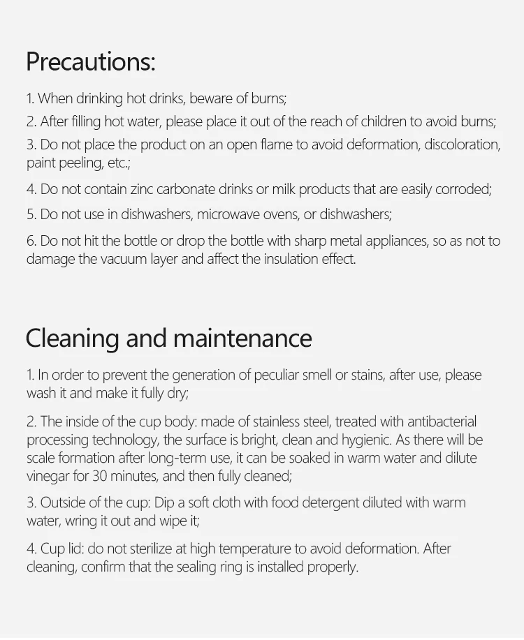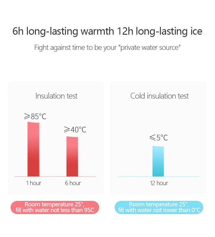 Внутренний Бак изготовлен из пищевой нержавеющей стали 304, которая является здоровой и безопасной. После вакуумной технологии, двухслойная теплоизоляция и долгосрочное сохранение тепла