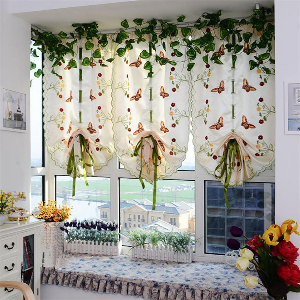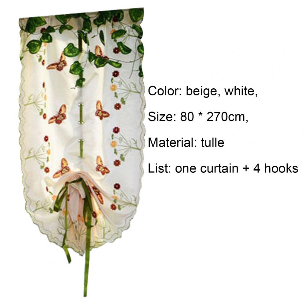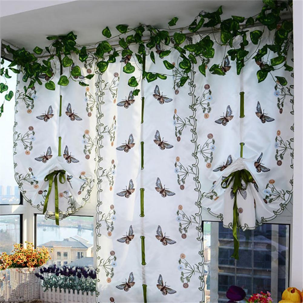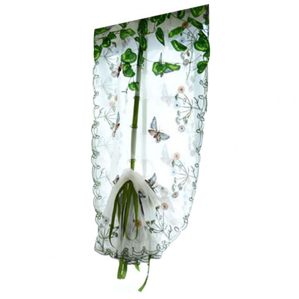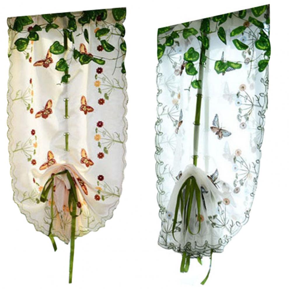 Дизайн с вышитыми бабочками и цветами; Занавеска в деревенском стиле выглядит изысканно и свежо.