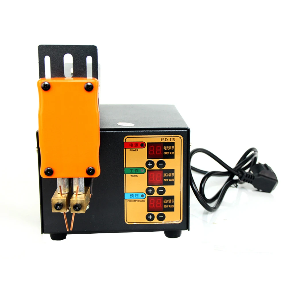 Большой блок батарей, сварочный охлаждающий порт, ножной переключатель управления, сварочный кронштейн, регулируемый сварочный ток (00-99), Импульсный регулируемый (00-06), регулировка задержки (00-99), сварка 0,2 мм (никелирование)
