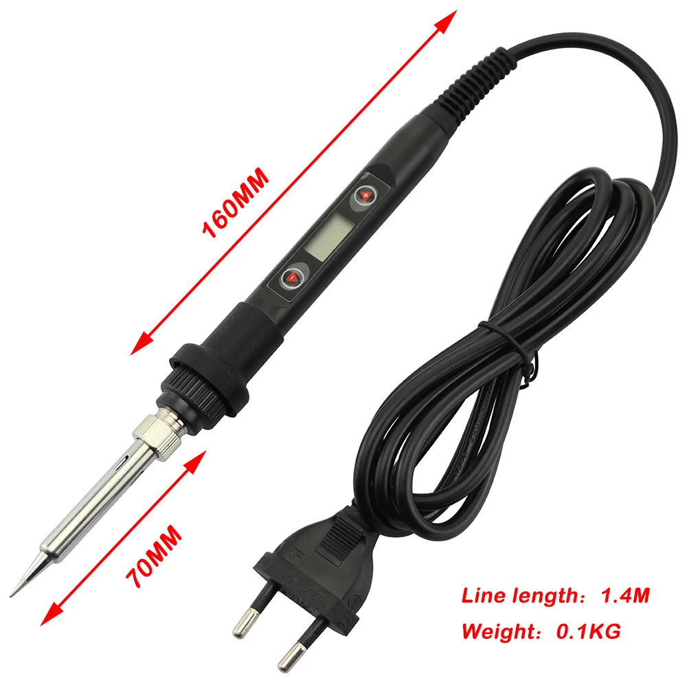Напряжение: AC220-240V или AC100-130V Мощность: 80 Вт Частота: 50 Гц/60 Гц Диапазон температур: 180 ~ 500 ℃/356 ~ 932 ℉ Стабильность температуры: ± 5 ℃ Тип нагрева: Wmore керамический элемент Наконечники паяльника: 900M-B1.2 Провод Длина: 1,4 m / 55.12in Размер паяльника: Approx.242 * 25*25 мм/9,6*0,98 * 0.98in Вес паяльника: Approx.96g/3,4 oz Размер посылка: прибл. 254*55*35 мм/10*2,2 * 1.4n Вес посылка: прибл. 139 г/4,9 унций