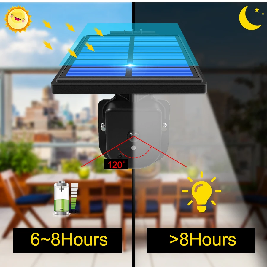 [Быстрая зарядка и длительное Освещение] после того, как солнечная панель заряжается в течение 6-8 часов на солнечном свете, Встроенная перезаряжаемая батарея емкостью 2200 мАч может поддерживать около 8 часов освещения. Эти солнечные охранные огни подходят для балконной стены, крыльца, забора, палатки и т. д.