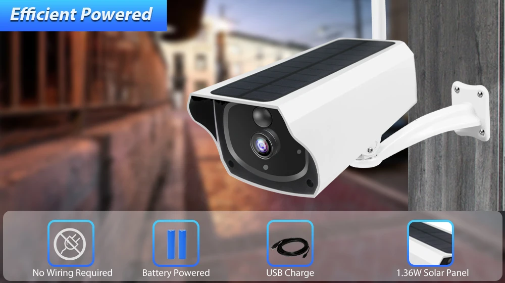 -Подключите камеру к солнечной панели 1,36 Вт, и она получит бесперебойное питание весь день и всю ночь. Вы можете легко разместить устойчивые к атмосферным воздействиям солнечные панели для максимального воздействия солнечных лучей. Это избавляет вас от проблемы ручной зарядки камеры.