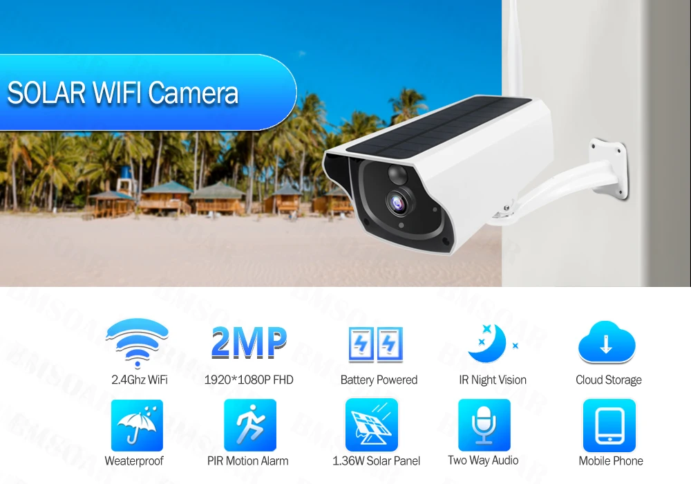 -Ваши беспроводные камеры с солнечными панелями могут легко получить бесперебойное питание, а дополнительная проводка совсем не требуется! На базе Wi-Fi 2,4 ГГц, может работать независимо