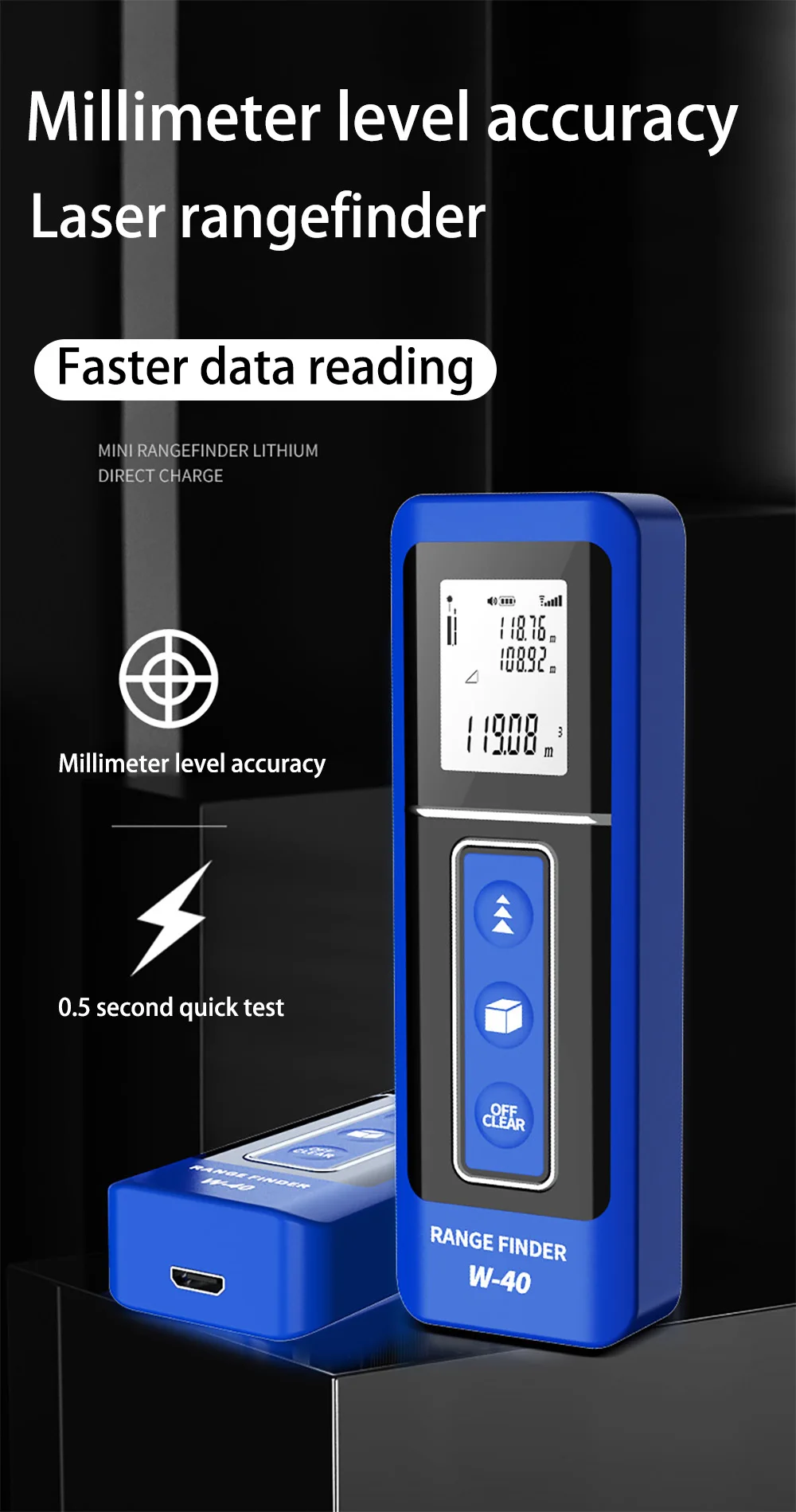 Лазерный дальномер JRTMFG, Инфракрасный измерительный прибор, портативный ручной лазерный дальномер с USB-зарядкой и высокой точностью
