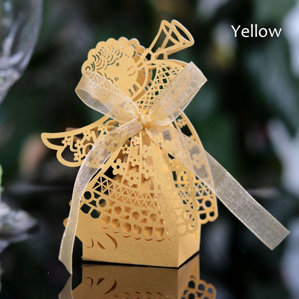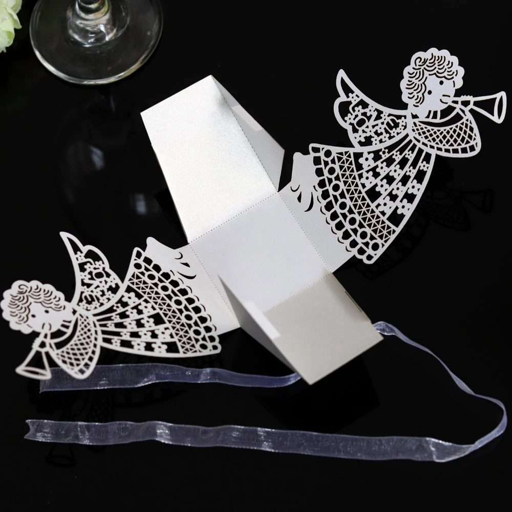 10 шт., подарочная упаковка в форме каретки ангела для девочек, коробки для шоколада и сладостей с лентой, декор для свадебной вечеринки