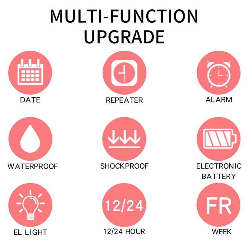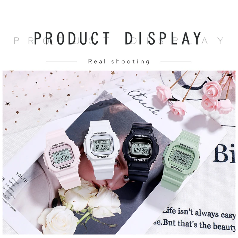 Материал: PU пластиковый ремешок, пластиковый чехол, нижняя крышка из нержавеющей стали, акриловое зеркало, Пряжка из нержавеющей стали.