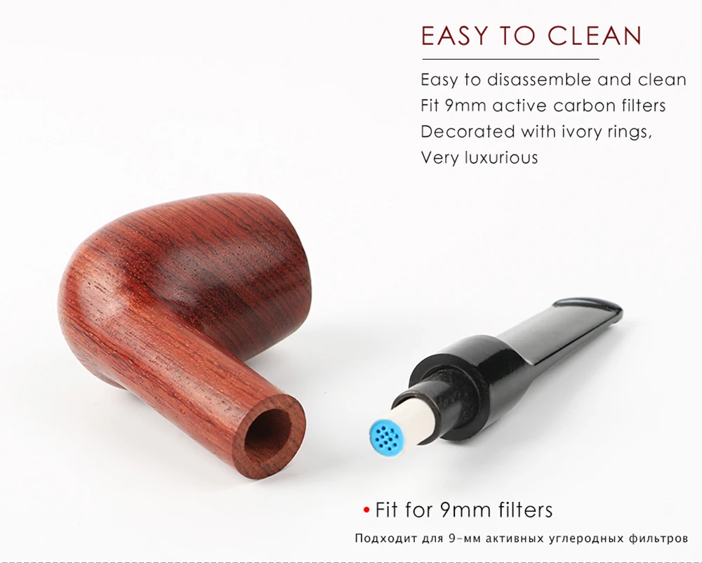 【Материал】 ● Бесплатные аксессуары для курения хорошего качества (2 шт. сети сгорания, 2 шт. укуса, 1 шт. нож для дыма, 10 шт. Vaune фильтры для активного угля, 10 шт. Чистящая штанга, 1 шт. сумка для коробки, 1 шт. мешочек из фланелета) ● Корпус трубы: 100% розовое дерево, штраф за подделку. ● Материал мундштука: высококачественный акрил пищевого класса материал s. ● Цвет: как на изображении. ● Тип: больше видов на выбор: ● Табачная труба полностью разбирается, чистка очень удобна, центр с фильтром для дыма, фильтром для масла, паром масла и т. д. вредные вещества, сохраняют курение более здоровым ● Превосходный материал и изысканный материал: ручная работа, изготовлено из высококачественной розовой древесины, хорошо сконструировано и гладко на поверхности, очень прочный; Используется Тщательно продуманная полировка, чтобы он выглядел более деликатным и красивым. ● Адаптивный фильтр: подходит для 9 мм активных угольных фильтров. ● Предустановленный углеродный слой: черный углеродный слой внутри трубы-это предустановленный углеродный слой, который играет роль огнестойкости, теплоизоляции и защиты труб. ● Особенности: легкий съемный стержень для легкой очистки, легко держать. ● Креативный подарок: можно дать в качестве возвратных подарков на день отца, вечеринки, день рождения и так далее. ● Применение: можно не только использовать для курения, но и использовать декоративно или в качестве коллекции. Флуоресцентный