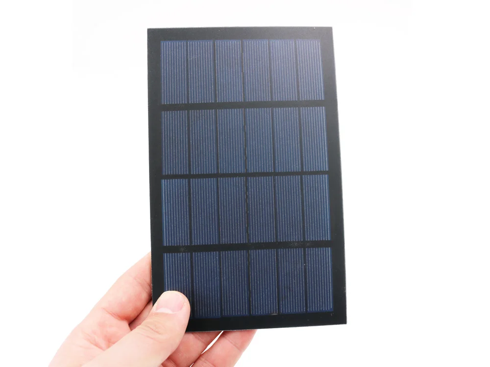 Цвет солнечных панелей: черныйТехнология: обработка шлифовки домашних животныхМаксимальная мощность: 2,5 WРабочий ток: 416mAРабочее напряжение: 6 ВНапряжение холостого хода: 7,2 VТок короткого замыкания: 460маФлуоресцентный