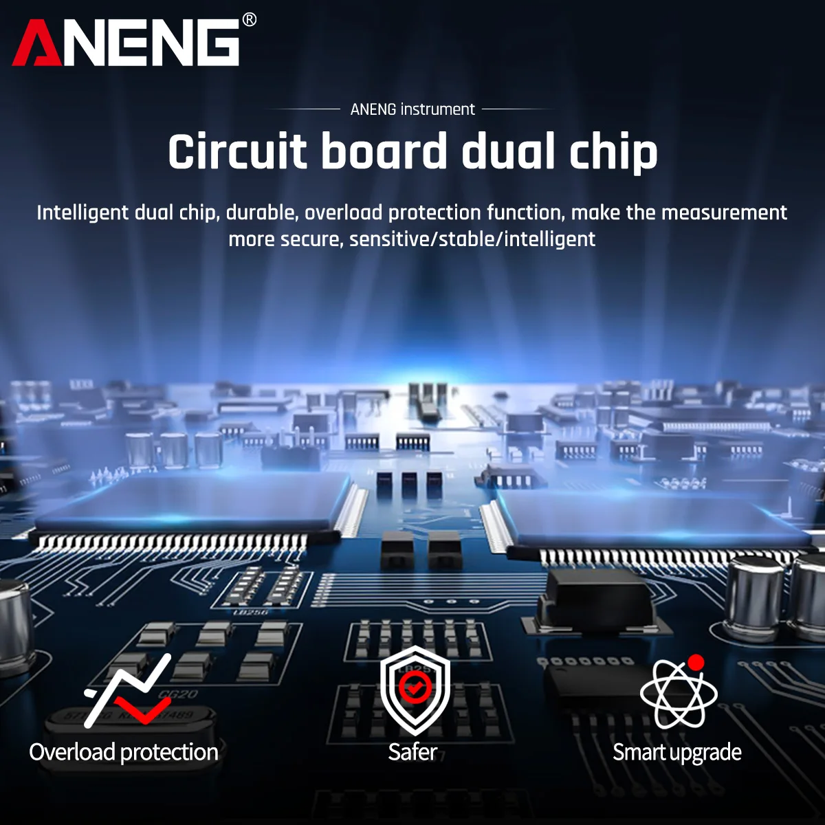 Карманный мультиметр ANENG отличается размером ладони, большим ЖК-дисплеем 4,77 дюйма, автоматическим диапазоном, истинным RMS, защитой от перегрузки, противоударным силиконовым покрытием и звуковым сигналом NCV. Он является ультрапортативным для обслуживания автомобилей, электроники, бытовой техники, ОВКВ и многого другого.