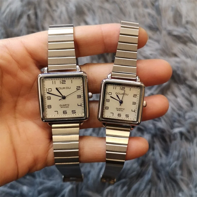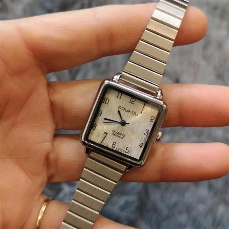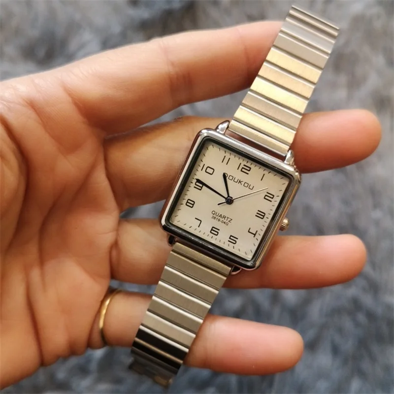 Простые женские модные часы с цифрами, элегантные женские кварцевые наручные часы с квадратным циферблатом, серебряные женские часы из нержавеющей стали, подарки