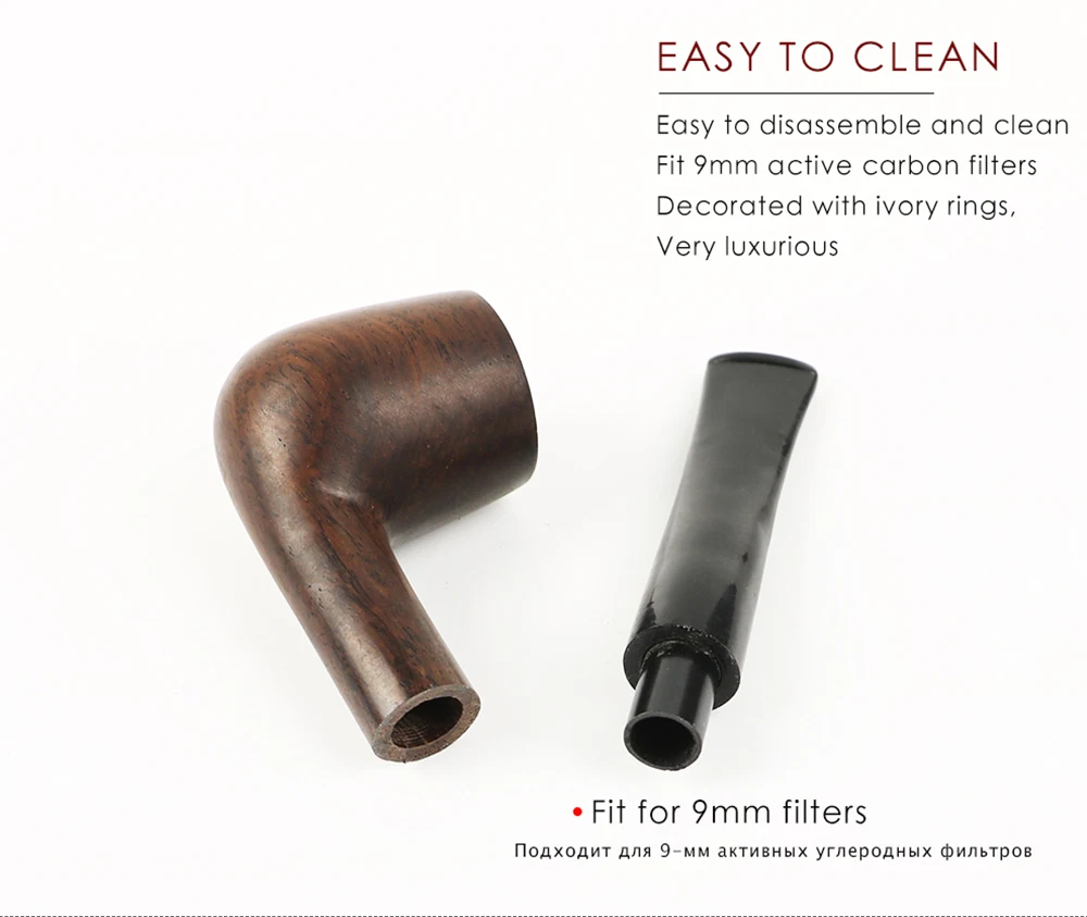 【Материал】 ● Корпус трубы: 100% EbonyWood, Decuple Penalty for Fake. ● Материал мундштук: высококачественный акрил пищевого класса ● Размер: Пожалуйста, проверьте подробную страницу ● Тип: прямой стебель ● Цвет: как на изображении. ● Адаптивный фильтр: подходит для 9 мм фильтров с активированным углем ● Особенности: легкий съемный стержень для легкой очистки, легко держать. ● Креативный подарок: Подарочная посылка. Подарочный набор. Может быть подарен в качестве возвратных подарков на день отца, вечеринки, день рождения и так далее. ● Применение: можно не только использовать для курения, но и использовать декоративно или в качестве коллекции. ● Высококачественная деревянная труба изготовлена из изысканной структуры, высокой плотности, высокой гладкости после шлифования, полировки и коррозионной стойкости, элегантного дизайна и элегантного внешнего вида. Дарите подарки любым любителям труб. ● После использования вы можете свободно снять сборку трубы для легкой очистки теплой водой. После сушки вы можете продолжать использовать его без каких-либо инструментов для удаления и легко чистить. ● Прочный и может использоваться повторно в течение длительного времени. ● Не содержит вредных веществ. ● Он может предотвратить утечку дыма и смолы.