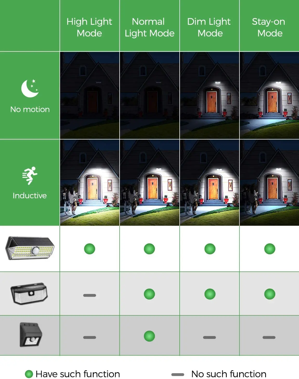 1. Умный режим безопасности (при обнаружении движения в ночное время. Датчик движения поворачивает светильник на полную высокую яркость в течение 20 секунд и автоматически выключается)